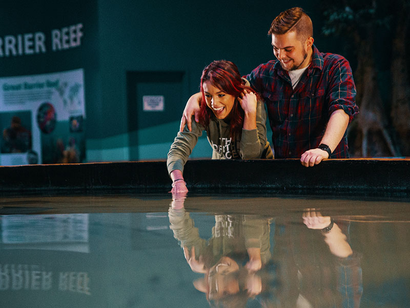 Use 2 fingers to touch urchins, shrimp, small crabs, feather duster worms, and more.